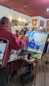 Maison bleue de SainteEn pleine action à la galerie 1855 lors de notre exposition de septembre 2023, un trio de Manon Tétreault, Ginette Berthiaume et moi .Maison située près de la plage de l’Anse aux Coques avec son air salin.